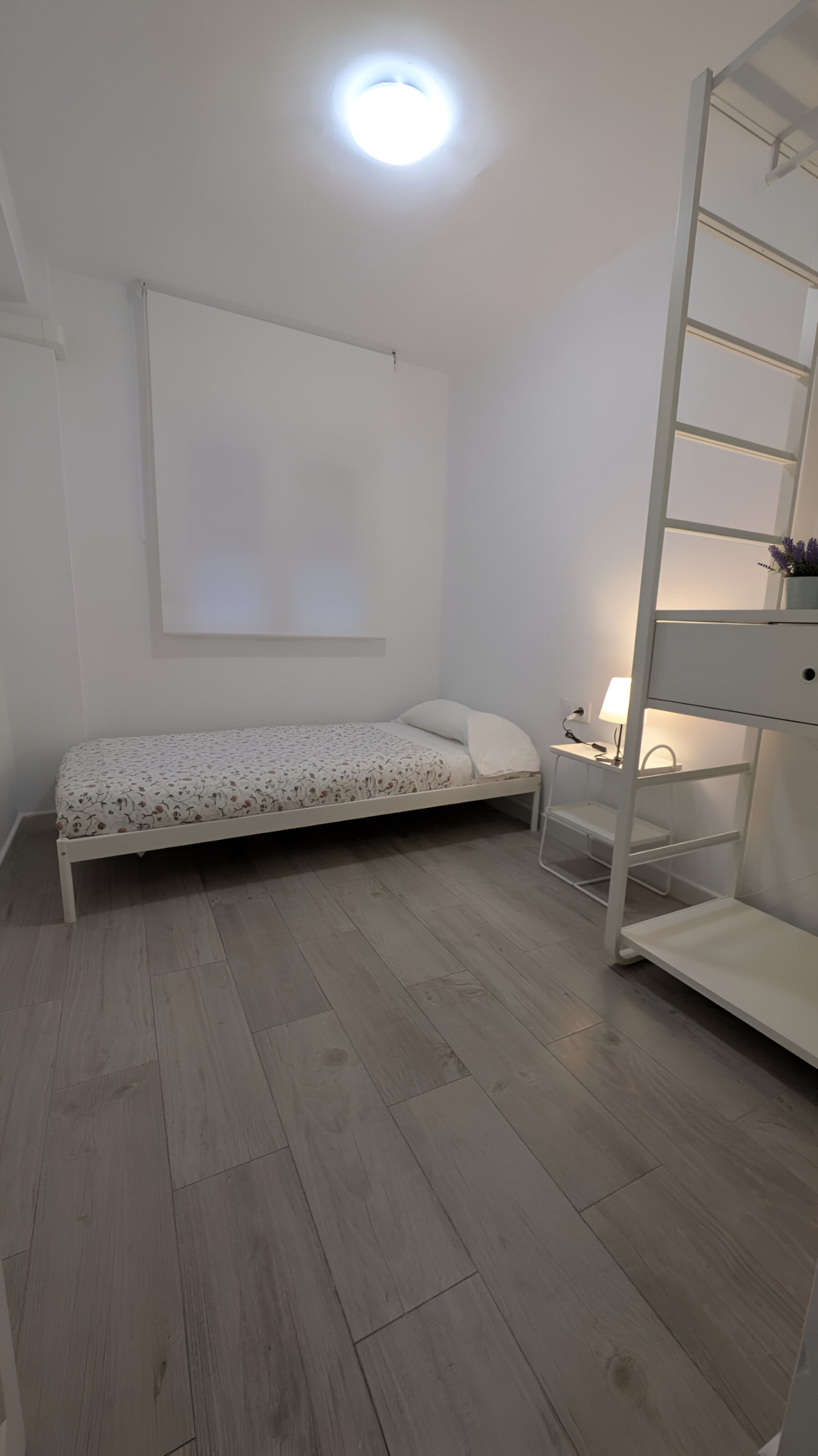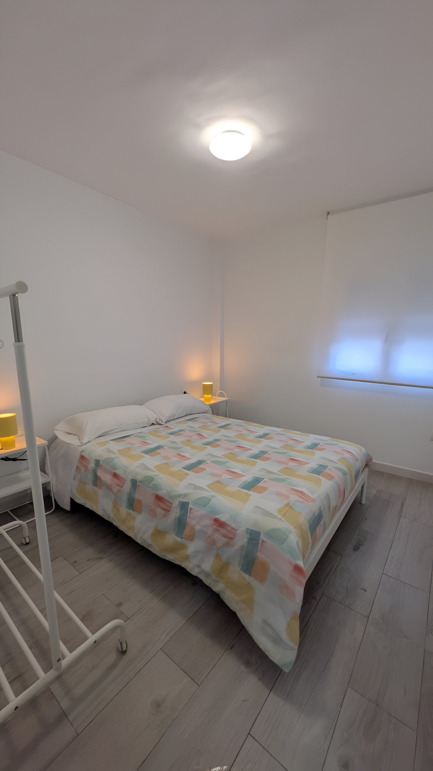 Apartamento recién reformado de un dormitorio, salón amplio con sofá cama, cocina en espacio abierto y un pequeño baño totalmente equipado -
