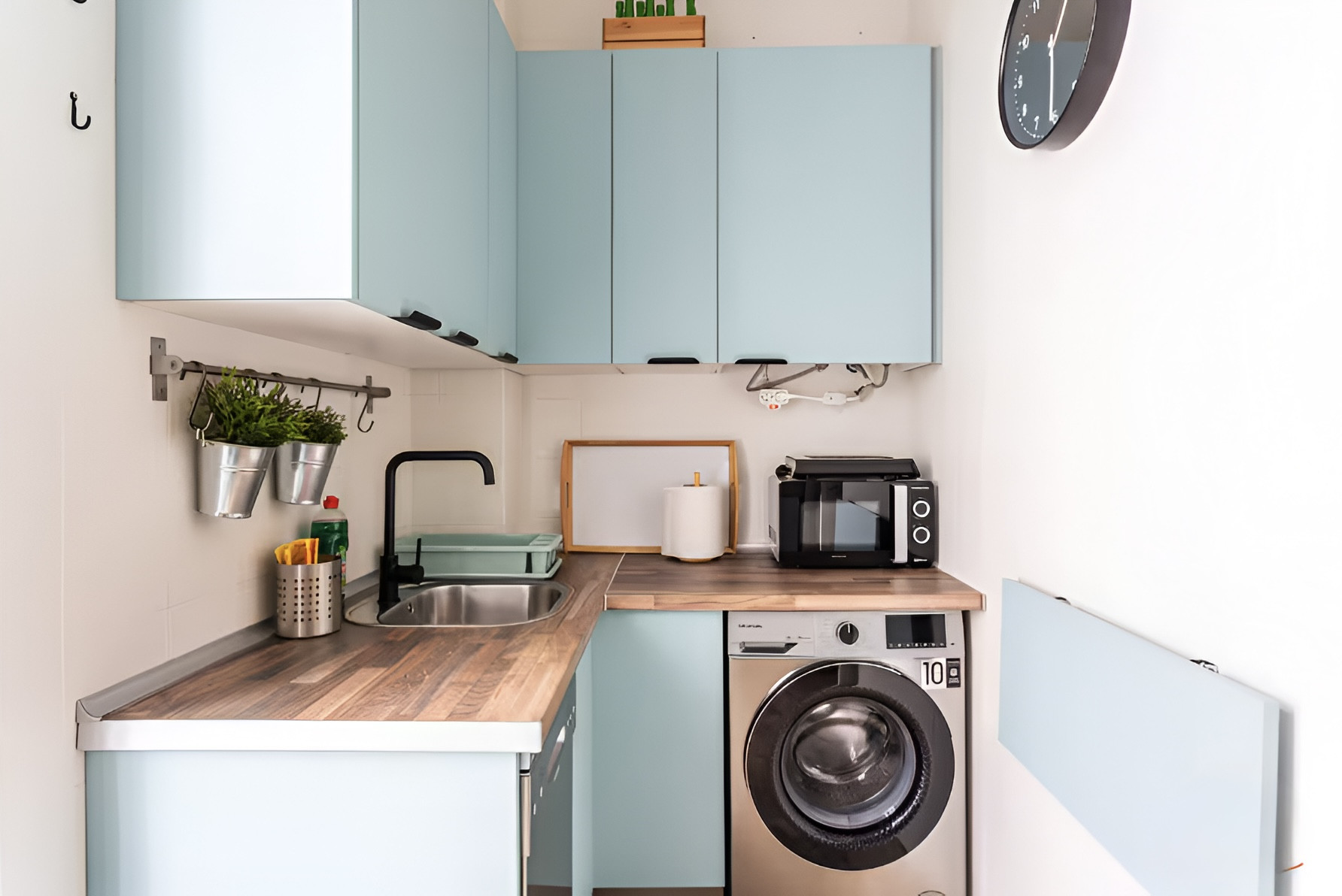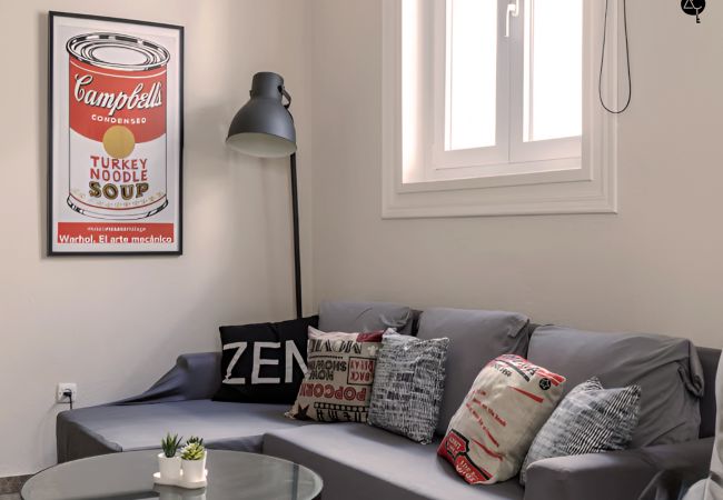 Apartamento recién reformado de un dormitorio, salón amplio con sofá cama, cocina en espacio abierto y un pequeño baño totalmente equipado -