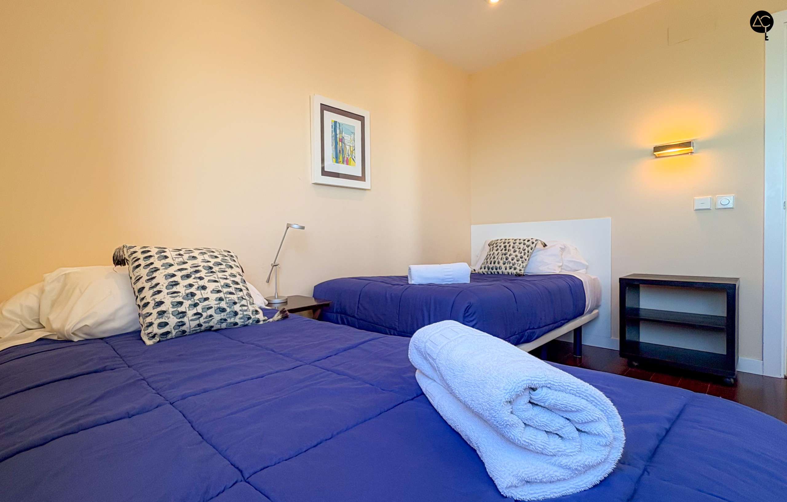 Apartamento de 3 dormitorios con un total de 3 camas de matrimonio y 2 individuales. Con dos baños independientes y cocina completamente equipada -