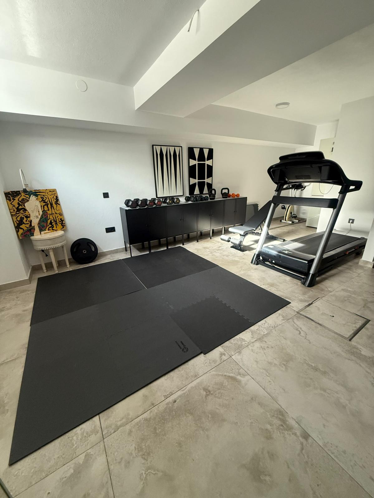 Dispone de jardín, mobiliario jardín, 50 m² de terraza, lavadora, plancha, acceso internet (wifi), secador, balcón, calefacción central, aire acondicionado en todo el alojamiento, piscina comunitaria, garaje en mismo edificio, 1 Televisor.